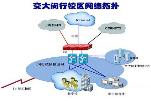 上海交通大学闵行校区是上海交大1985年开始筹建,历经20多年,已将闵行校区建设成设施完善,环境优美的现代化大学校园,并已将交大的办学重心向闵行校区的基本转移成功。目前,上海交通大学闵行校区,建立了完善的内部校园Intranet网,包括校IDC中心,学校内部OA系统,教学和办公网。上海交通大学是全国第一家部署万兆校园网的学校,其内部网络均为万兆,内网访问速度非常快。