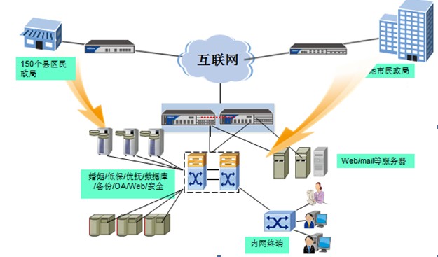 2011年6月,山东省民政厅启动网络改造项目,建设覆盖到区县的民政信息通信网络,以更好地支撑区县对市局的各类民政业务。为保障系统的安全性和业务连续性,用户选择了集VPN、访问控制、防病毒为一体的Hillstone远程互联安全解决方案,运用Hillstone高性能安全网关,为民政业务的纵向互联互访提供高可靠的安全保障。