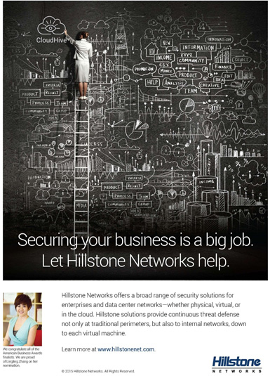 美国时间2015年11月13日,2015年第十二届史迪威商业女性奖在纽约揭晓,山石网科市场和业务拓展副总裁张凌龄女士在全球各领域的数百位精英中脱颖而出,获得商业产品类别的女性高管铜奖。该奖项是对张凌龄女士在商业女性中所起到的模范作用的肯定与嘉奖。同时,张凌龄女士也是历年来为数不多的获奖华裔女性之一。
